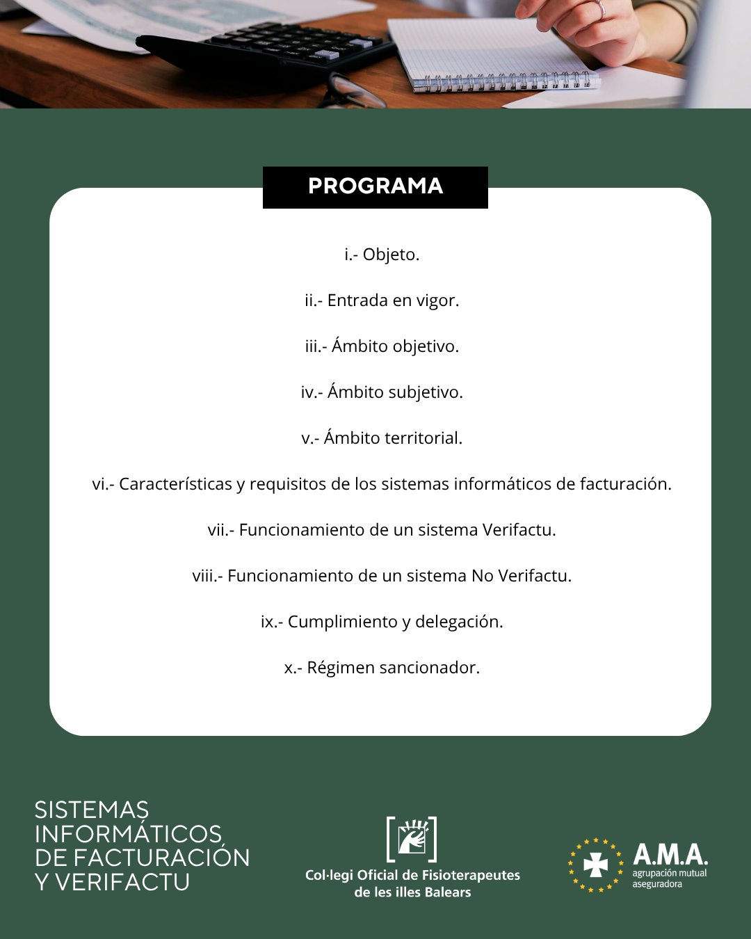 Durante la formación se abordarán aspectos prácticos sobre el uso de programas de facturación, los requisitos técnicos del sistema Verifactu y cómo integrarlos en la actividad diaria de los profesionales.