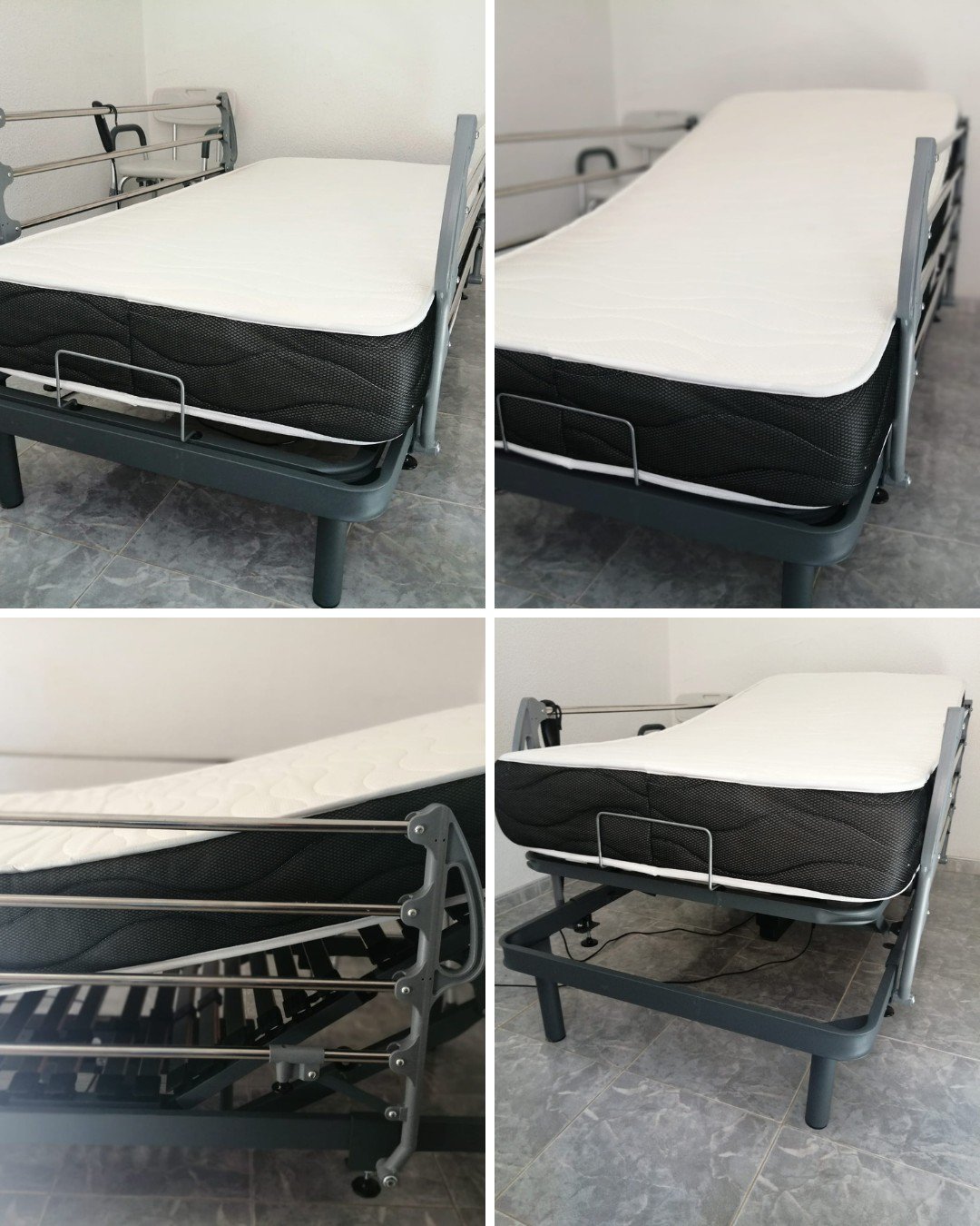 Se vende cama articulada individual de 90 x 190 cm, 4 días de uso, con varandillas + colchón.